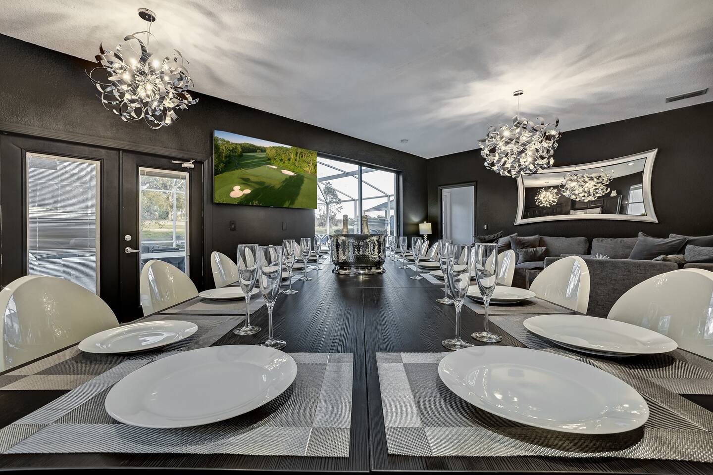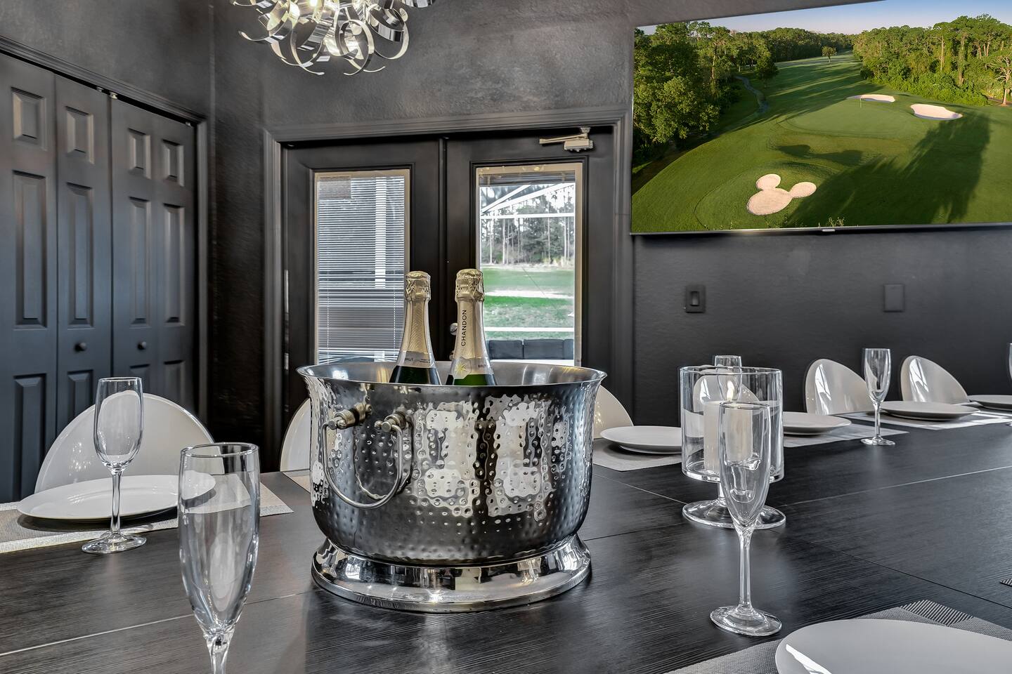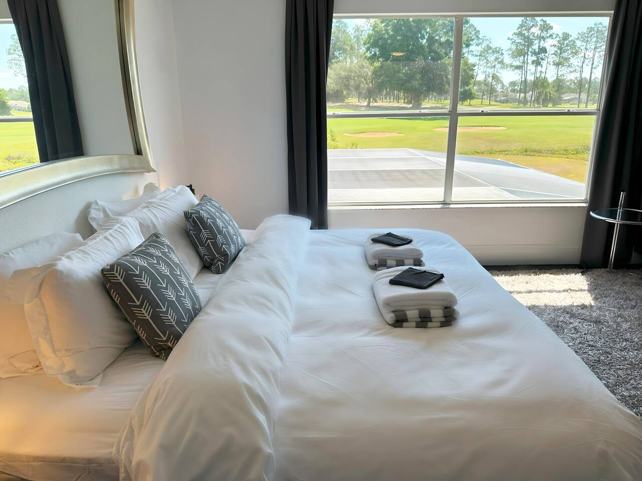 Welcome to our stunning DisneyMansion Golf - Tennis - Private - Pool - Resort - Home! A luxurious 14-room property boasts over 5,000 sqft (about 3,500 sqft of interior space and a sprawling 1,500 sqft pool patio). Home is perfect for family reunions, celebrations, retreats, and golf trips - for up to 30 persons (max 20 adults and 10 children). Book your stay today and experience the ultimate in luxury and relaxation. This DisneyMansion Golf Resort Villa with Private Pool - Golf - Tennis - SPA - with its stunning private pool and patio overlooking the Golf Course and Clubhouse, this villa is the perfect place to relax and unwind. With up to 12 bedrooms (11 bedrooms with an optional 12th sleeping room can be requested to be set up as part of the movie room if needed) and 5 bathrooms, this villa can accommodate up to 30 persons (up to 20 adults + 10 children). The fully equipped kitchen features top-of-the-line stainless steel appliances, including a Nespresso cappuccino, latte maker, and soda stream to make your sparkling water or soda. The large kitchen and living room table can seat up to 20 people, making it the perfect place for a family dinner or group gathering. The living room is furnished with an oversized sofa group, coffee table, and a 75-inch Smart TV, providing the perfect space for relaxation and entertainment. With 14 TVs throughout the home, there are plenty of entertainment options. For those who love movies, games, and golf, the in-house Movie- Game and Golf Studio is the perfect place to spend your time. When it's time to enjoy the outdoors, the patio offers seating for up to 28 people and a BBQ grill, making it the perfect place for a cookout. Whether you prefer a king-sized bed or two twin beds, we've got you covered. Our bedrooms are fully customizable to suit your needs and preferences. You'll love feeling refreshed and rejuvenated after a restful night's sleep. And let's remember the bathrooms! They come with high thread count bath linen, ensuring you'll feel pampered and indulged every time you step out of the shower or bath. * BR # 1: 1 King or 2 Twin Beds, 1 Twin Bed, Smart TV * BR # 2: 1 King Bed or 2 Twin Beds, 1 Twin Bed, Smart TV * BR # 3: 1 King Bed or 2 Twin Beds, Daybed, Smart TV * BR # 4: 1 Queen Bed, Smart TV * BR # 5: 1 King Bed or 2 Twin Beds, Daybed Smart TV * BR # 6: 1 King Bed or 2 Twin Beds, 1 Twin Bed, Smart TV * BR # 7: 1 King Bed or 2 Twin Beds, Smart TV * BR # 8: 1 King Bed or 2 Twin Beds, 1 Twin Bed, Smart TV * BR # 9: 1 King Bed or 2 Twin Beds, 1 Twin Bed, 1 Full Bed, Smart TV * BR # 10: 1 King Bed or 2 Twin Beds, 1 Full Bed, Smart TV * BR # 11: 1 Queen, Smart TV * Optional 12th BR # 12: 1 single bed, Smart TV * BA # 1: Bathroom with Dual Showers and Dual Sinks * BA # 2: Bathroom with Bathtub and Shower combination * BA # 3: Bathroom with Jacuzzi Tub and Shower combination * BA # 4: Bathtub and Shower combination * BA # 5: Bathroom with standing shower * BA # 6: Bathroom with standing shower We are thrilled to offer you a little extra to make your stay with us unforgettable. Our Movie-Game and Golf Studio has a state-of-the-art short-through ceiling-mounted projector, providing a real in-home movie theater experience. You can enjoy your favorite movies, games, and golf sessions in the comfort of your own home. We also offer a complimentary BBQ grill, perfect for those beautiful evenings with family and friends. Our Netflix and Amazon accounts are available, providing you with 24/7 free movies. We have a wide range of family games, including Scrabble, Jenga, Kids against Maturity, Hygge games, and Blackjack, all available for entertainment. For sports enthusiasts, we offer free tennis on one tennis court and a Golf Simulator and launch Monitor used by PGA pros (upon request). If you're interested in golf, we have an optional Golf Membership available, so please ask for more information. We understand that parking can be a hassle, so we offer free car parking up to three vans per home and additional guest parking on the road. Please don't hesitate to make your reservation with us today or ask for more information. We would love to host you and make your stay with us unforgettable :-) INQUIRE with US: Look/Search for "Contact Host" on bottom of this page Ask us for possible Lower Price or Larger Home Options Available. Let us know your Dates, Nr People, BUDGET, Nr of BEDROOMS needed