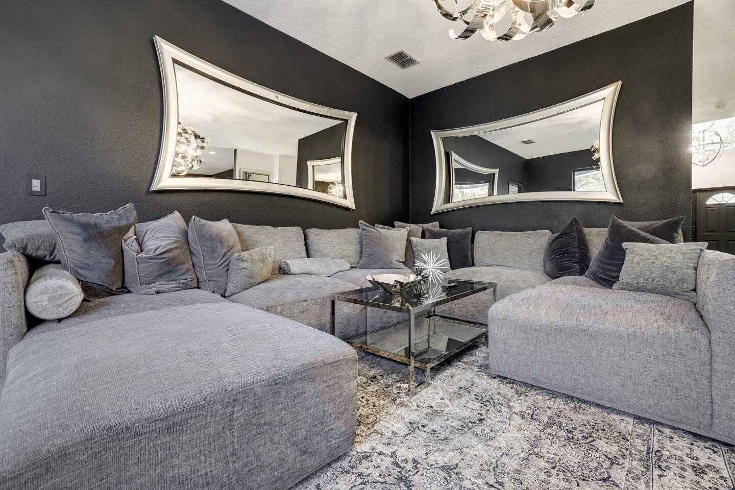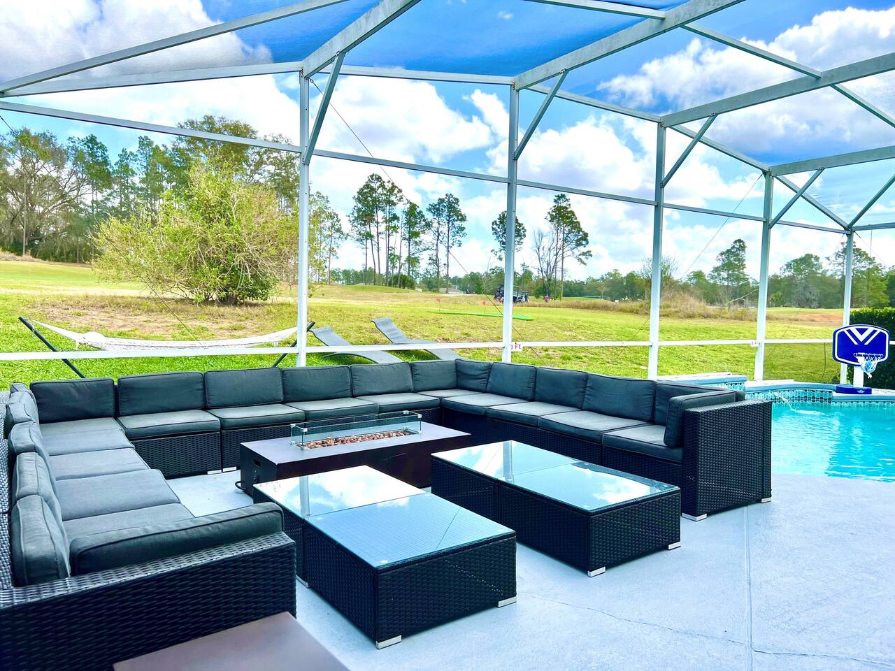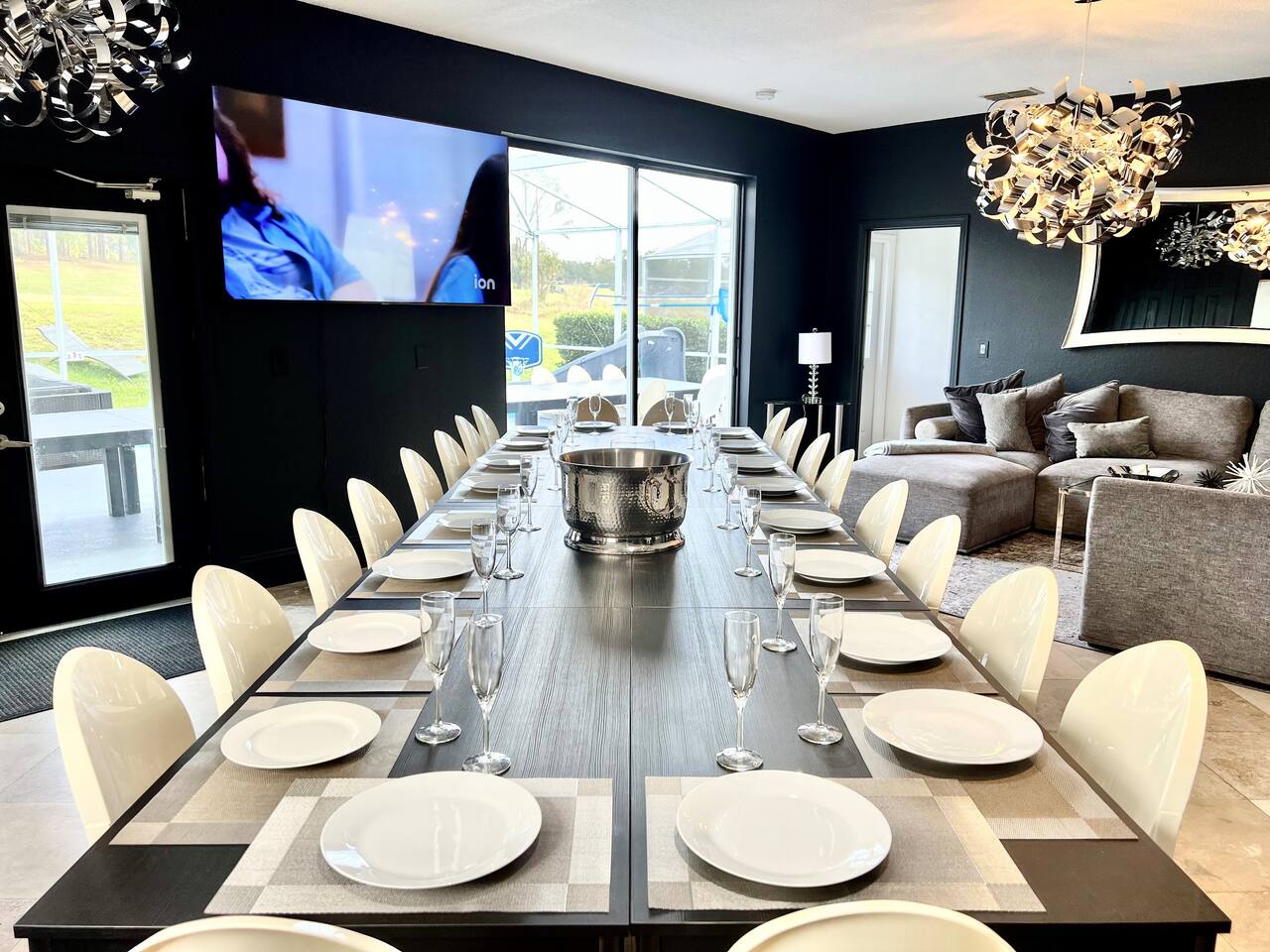 Welcome to our stunning DisneyMansion Golf - Tennis - Private - Pool - Resort - Home! A luxurious 14-room property boasts over 5,000 sqft (about 3,500 sqft of interior space and a sprawling 1,500 sqft pool patio). Home is perfect for family reunions, celebrations, retreats, and golf trips - for up to 30 persons (max 20 adults and 10 children). Book your stay today and experience the ultimate in luxury and relaxation. This DisneyMansion Golf Resort Villa with Private Pool - Golf - Tennis - SPA - with its stunning private pool and patio overlooking the Golf Course and Clubhouse, this villa is the perfect place to relax and unwind. With up to 12 bedrooms (11 bedrooms with an optional 12th sleeping room can be requested to be set up as part of the movie room if needed) and 5 bathrooms, this villa can accommodate up to 30 persons (up to 20 adults + 10 children). The fully equipped kitchen features top-of-the-line stainless steel appliances, including a Nespresso cappuccino, latte maker, and soda stream to make your sparkling water or soda. The large kitchen and living room table can seat up to 20 people, making it the perfect place for a family dinner or group gathering. The living room is furnished with an oversized sofa group, coffee table, and a 75-inch Smart TV, providing the perfect space for relaxation and entertainment. With 14 TVs throughout the home, there are plenty of entertainment options. For those who love movies, games, and golf, the in-house Movie- Game and Golf Studio is the perfect place to spend your time. When it's time to enjoy the outdoors, the patio offers seating for up to 28 people and a BBQ grill, making it the perfect place for a cookout. Whether you prefer a king-sized bed or two twin beds, we've got you covered. Our bedrooms are fully customizable to suit your needs and preferences. You'll love feeling refreshed and rejuvenated after a restful night's sleep. And let's remember the bathrooms! They come with high thread count bath linen, ensuring you'll feel pampered and indulged every time you step out of the shower or bath. * BR # 1: 1 King or 2 Twin Beds, 1 Twin Bed, Smart TV * BR # 2: 1 King Bed or 2 Twin Beds, 1 Twin Bed, Smart TV * BR # 3: 1 King Bed or 2 Twin Beds, Daybed, Smart TV * BR # 4: 1 Queen Bed, Smart TV * BR # 5: 1 King Bed or 2 Twin Beds, Daybed Smart TV * BR # 6: 1 King Bed or 2 Twin Beds, 1 Twin Bed, Smart TV * BR # 7: 1 King Bed or 2 Twin Beds, Smart TV * BR # 8: 1 King Bed or 2 Twin Beds, 1 Twin Bed, Smart TV * BR # 9: 1 King Bed or 2 Twin Beds, 1 Twin Bed, 1 Full Bed, Smart TV * BR # 10: 1 King Bed or 2 Twin Beds, 1 Full Bed, Smart TV * BR # 11: 1 Queen, Smart TV * Optional 12th BR # 12: 1 single bed, Smart TV * BA # 1: Bathroom with Dual Showers and Dual Sinks * BA # 2: Bathroom with Bathtub and Shower combination * BA # 3: Bathroom with Jacuzzi Tub and Shower combination * BA # 4: Bathtub and Shower combination * BA # 5: Bathroom with standing shower * BA # 6: Bathroom with standing shower We are thrilled to offer you a little extra to make your stay with us unforgettable. Our Movie-Game and Golf Studio has a state-of-the-art short-through ceiling-mounted projector, providing a real in-home movie theater experience. You can enjoy your favorite movies, games, and golf sessions in the comfort of your own home. We also offer a complimentary BBQ grill, perfect for those beautiful evenings with family and friends. Our Netflix and Amazon accounts are available, providing you with 24/7 free movies. We have a wide range of family games, including Scrabble, Jenga, Kids against Maturity, Hygge games, and Blackjack, all available for entertainment. For sports enthusiasts, we offer free tennis on one tennis court and a Golf Simulator and launch Monitor used by PGA pros (upon request). If you're interested in golf, we have an optional Golf Membership available, so please ask for more information. We understand that parking can be a hassle, so we offer free car parking up to three vans per home and additional guest parking on the road. Please don't hesitate to make your reservation with us today or ask for more information. We would love to host you and make your stay with us unforgettable :-) INQUIRE with US: Look/Search for "Contact Host" on bottom of this page Ask us for possible Lower Price or Larger Home Options Available. Let us know your Dates, Nr People, BUDGET, Nr of BEDROOMS needed