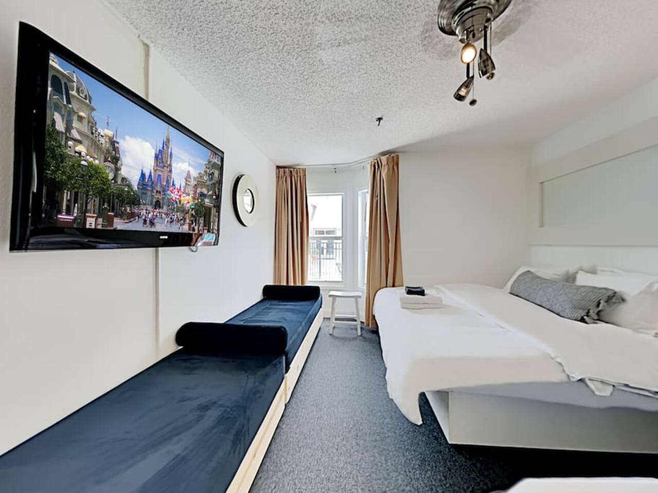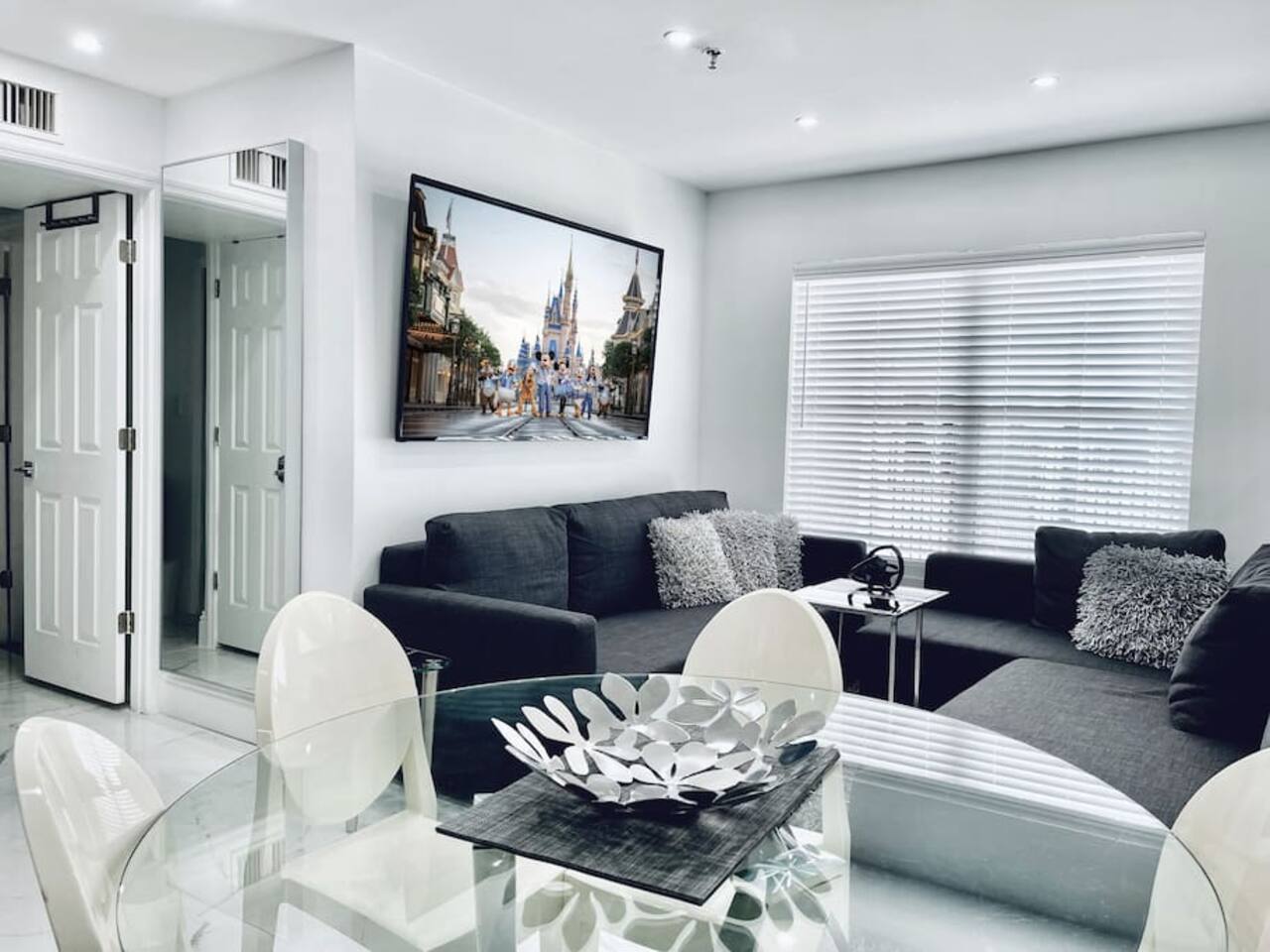 Contemporary Deluxe 2 Room Disney Celebration Resort Poolside Condo (approximately 540sf) sleeping up to 4 people (same family in 1 bedroom) with Discount Park Tickets, Golf & SPA - Located in the heart of Disney World right in between Disney Celebration & Downtown Disney! We offer the ultimate in convenience, comfort of home, and value. Conveniently located in Disney Celebration surrounded by hundreds of restaurants, bars, and outlet stores. Located in the heart of Disney World, right in between Disney Celebration & Downtown Disney, this condo offers unparalleled convenience and comfort. You'll feel right at home in this beautifully appointed space, complete with all the amenities you need for a relaxing and enjoyable stay. The condo features a spacious bedroom that can comfortably accommodate the entire family, as well as a cozy living area with plenty of seating for everyone. The fully equipped kitchen is perfect for preparing meals and snacks, and the dining area is ideal for enjoying family meals together. But the real highlight of this condo is the poolside location. Imagine waking up each morning to the sound of the pool and the warm Florida sun shining down on you. You'll have easy access to the pool and all its amenities, making it the perfect place to relax and unwind after a long day at the parks. And when you're ready to explore the area, you'll find yourself surrounded by hundreds of restaurants, bars, and outlet stores. Whether you're looking for a quick bite to eat or a night out on the town, you'll find everything you need just steps away from your front door. Kitchen: Fully Equipped Kitchen with Stove cooktop, Over-the-counter Convectional Microwave Oven, Fridge-Freezer, Dishwasher, Coffeemaker, Toaster, Blender, Pots & Pans, Cooking/eating utensils, Iron, Ironing-board, Ice-Bucket, Wine Glasses, Dining Table with chairs. The living room has a 70-inch Smart TV and a comfortable sofa group overlooking the inviting pool area. The bedroom has 2 King Size Beds and 2 extra single daybeds, 50 Inch Plasma TV with Cable TV, and closets. All Beds come with Down Comforters, Memory Foam, Duvet Sheet Covers, and High Thread Count Bed Linen. Bathroom with 1 Bath Tub & Shower, High Tread Count Bed- & Bath Linen. Pool Area is right outside your door and has a total of 3 Pools including one swimming pool and two whirlpool Hot Tub Jacuzzis. Host a BBQ on the spacious pool patio, complete with a BBQ grill. And when it's time to sit down and enjoy your meal, gather around the outdoor table with comfortable seating for all. Don't hesitate to make your reservation with us today or inquire for more information. We would love to host you and make your stay with us unforgettable. :-)