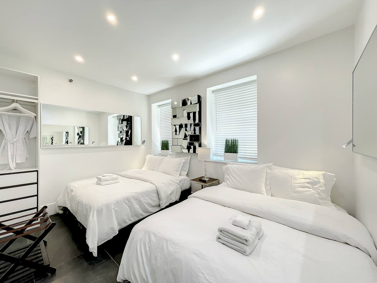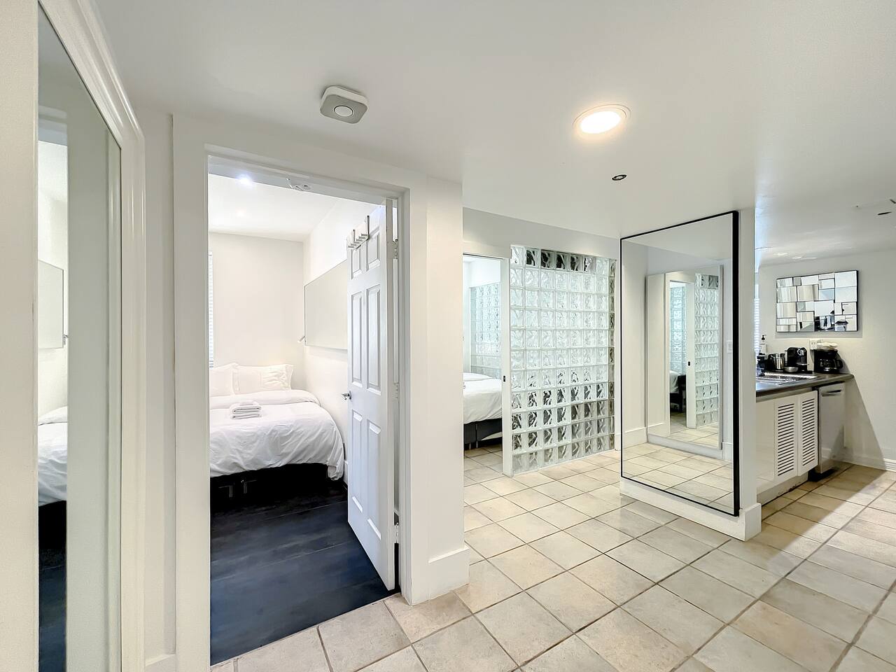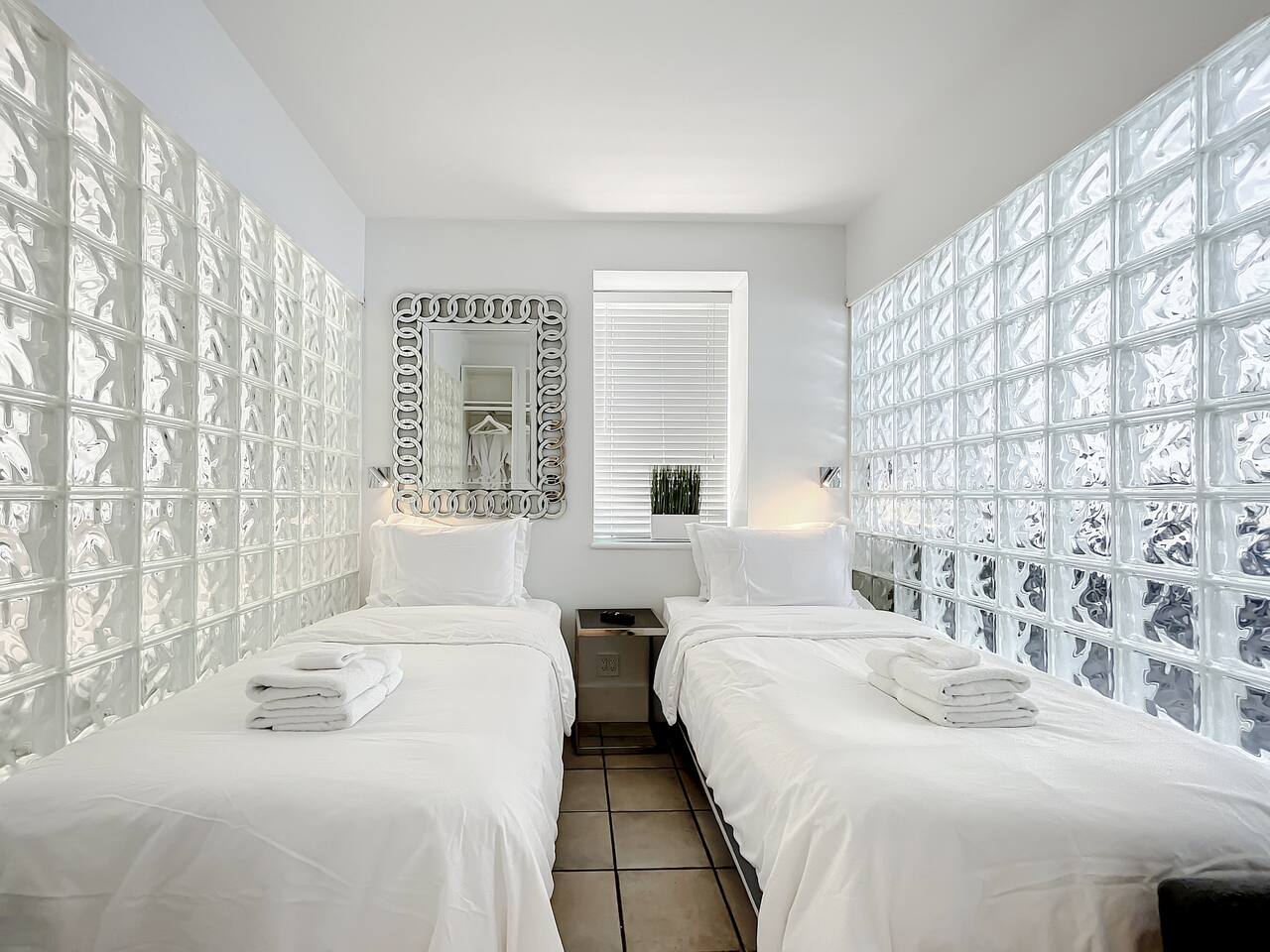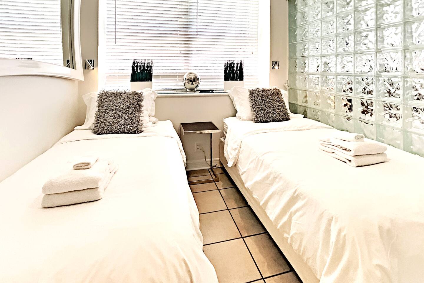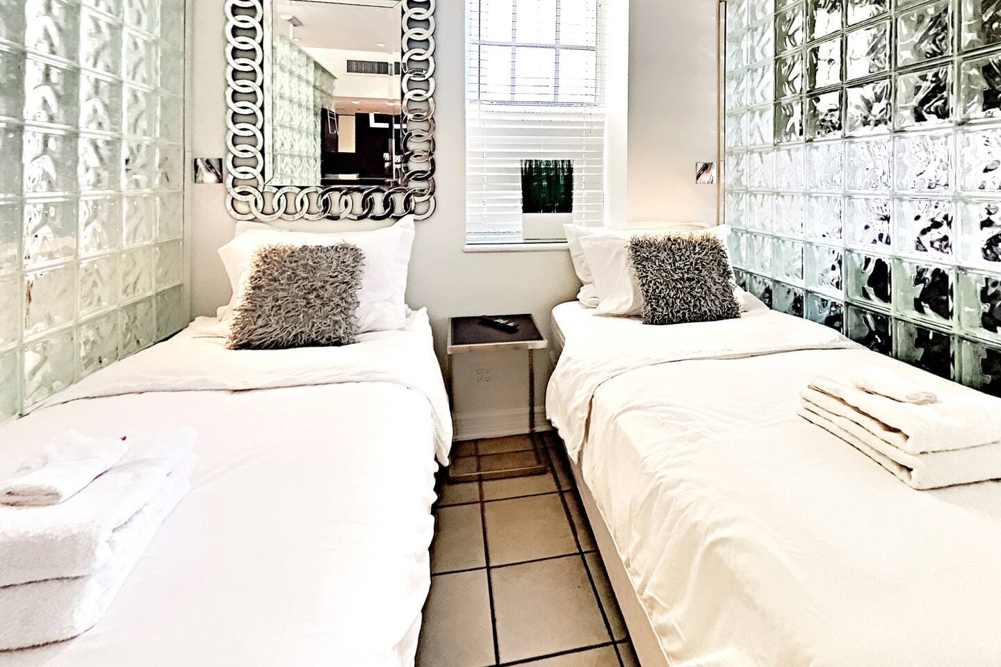 IMPORTANT NOTE: Rate varies/fluctuates depending on number of adults and children staying. Please make sure you enter right estimated number of guests when inquiring. Also if you are on a limited budget please specify budget when inquiries as we have other units that are smaller/less expensive and larger/exclusive which may be more suitable for you. While the condo does have partial city view, it does not have ocean views, the building does face the ocean, is on one of the higher floors, and tucked away from street noise. Metered street parking is right outside the condo, and a parking garage is only about 1 block away. If you plan on arriving on a Friday or Saturday for more than five nights, please inquire about availability before booking. We usually do not allow Friday or Saturday arrivals if the stay is more than five nights since it would cover two possible weekends BED SET-UP: Please get in touch with our home caretaker via EMAIL at least 7 days before your arrival with your preferred bed set up (if you are singles or couples/queen/king beds vs. twin beds). SOPHISTICATED CUSTOMIZED BED SETUP: Please see the floor plan for furnishings and bed setup options. Please note that we have a sophisticated and flexible customized bed set-up for each guest, where each bedroom can be set up with 1 Queen/King or 2 Single beds. For king-size bedding, we use a memory foam mattress topper, a king-size mattress cover, a king-size fitted sheets so there is no seam, and you can enjoy the extra memory foam comfort. SHEETS, DUVET & BEDDING - We provide 2 Twin-size down comforters for a king-size bed set up or 1 Twin down comforter for each twin-size bed set up. (1 per person) - We provide 4 pillows for a Queen/King size bed set up and 2 pillows for each Single bed set up (that is 2 per person) - When a Queen/King-size bed set up is requested, 2 single bed frames are placed together covered with memory foam and a Queen/King size mattress cover. (So, you get the comfortable Queen/King size bed experience). - We use duvet sheets around each down comforter, typical in Europe and most modern hotels. The duvet sheet cover sheets get washed before each guest's arrival. Therefore, we do not use any additional top sheets, as the duvet sheet that covers the comforter is the fitted top sheet. On the same 8th block as oceanfront CasaGrandeSouthBeach (as seen with clay roof in some aerial photos), you can also find Rooftop at Tiffany with heated pool access from $25/pp with a Resort Day Pass featuring Poolside Bar/Food/Beverage, Towel service, Wifi (subject to availability & price fluctuation, this is marked as a shared pool access in listing amenities option), next to News Cafe. You can take the Ocean Ct back alley for about a 2-minute walk between Casa Grande and Tiffany. Note, there is a restaurant on the first floor with an outdoor terrance overlooking world famous Lummus Park Beach and South Beach Muscle Beach Gym (there is no balcony or terrance in or for the condo, however the beach is just about a stone through away from the exterior of building.