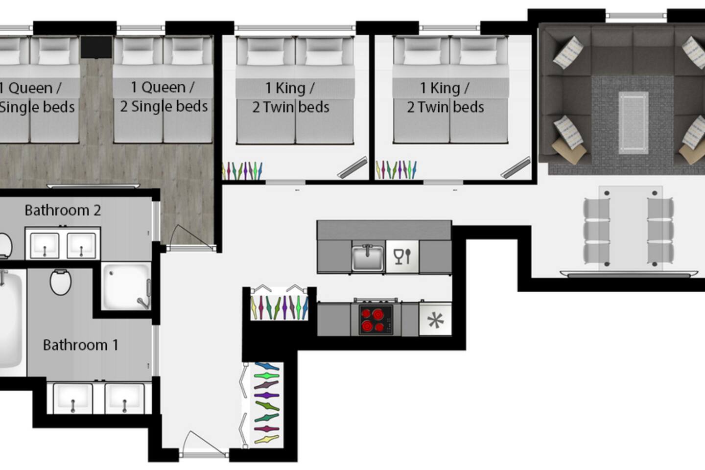 Welcome to our luxurious upscale 4-room condo in a Beachfront building by CasaGrandeSouthBeach! This upscale home boasts a spacious 850 square feet, sleeping up to 8 people. As the largest type of suite in the building, you'll have plenty of room to relax and unwind. Located in the heart of South Beach, this condo offers the best location possible. With the beach right outside your door, you can enjoy the sun, sand, and surf whenever you like. And with everything within walking distance, you'll have easy access to all the best restaurants, shops, and attractions South Beach offers. This stunning Ocean Drive Condo is designed with 3 sleeping room areas, a cozy living room, a full-size kitchen, and 2 modern bathrooms. You'll love the sleek and stylish decor, which perfectly complements this stunning ocean beach condo consisting of: Fully Equipped Kitchen with an eat-in bar area: Fridge-Freezer, Oven, Stove, Dishwasher, Microwave, Coffeemaker, Toaster, Vitamix Blender, Nespresso and Keurig Cappuccino Latte Maker, Sodastream- Make Your Own Sparkling Water or Soda, Pots and Pans, Cooking and eating utensils, Ice Bucket & Wine and Champagne Glasses. All Bedrooms come with Down Comforters, Memory Foam, Duvet Sheet Covers, and High Thread Count Bed Linen. Whether you prefer large-size beds or individual beds, we've got you covered. Our bedrooms are fully customizable to suit your needs and preferences. You'll love waking up in the morning feeling refreshed and rejuvenated after a restful night's sleep. And let's not forget about the bathrooms! They come complete with high thread count bath linen, ensuring that you'll feel pampered and indulged every time you step out of the shower or bath. * BR #1 (up to 4 pers) - Full-size bedroom with 2 Queen Beds or 4 Single Beds, 75-inch Smart TV, and closet * BR #2 (up to 2 pers) - 1 King Size Bed or 2 Twins- after preference, 43-inch Smart TV and closet * BR #3 (up to 2 pers) - 1 King Size Bed or 2 Twins- after preference, 43-inch Smart TV and closet - All bedrooms are completely private with floor-to-ceiling walls and doors - redesigned in 2022 - (BR #2 & 3 are smaller-sized bedrooms and feature an Art Deco-designed glass block design for a true bright Miami Beach Art Deco vibe. * Combined Living Room and Dining area with Sofas, coffee table, 75-Inch Smart TV, and dining table with chairs. * BA #1 Bathroom with dual sinks, bathtub and shower combination, and toilet. * BA #2 Bathroom with dual sinks, standing shower, and toilet. Don't hesitate to make your reservation with us today or inquire for more information. We would love to host you and make your stay with us unforgettable. :-)