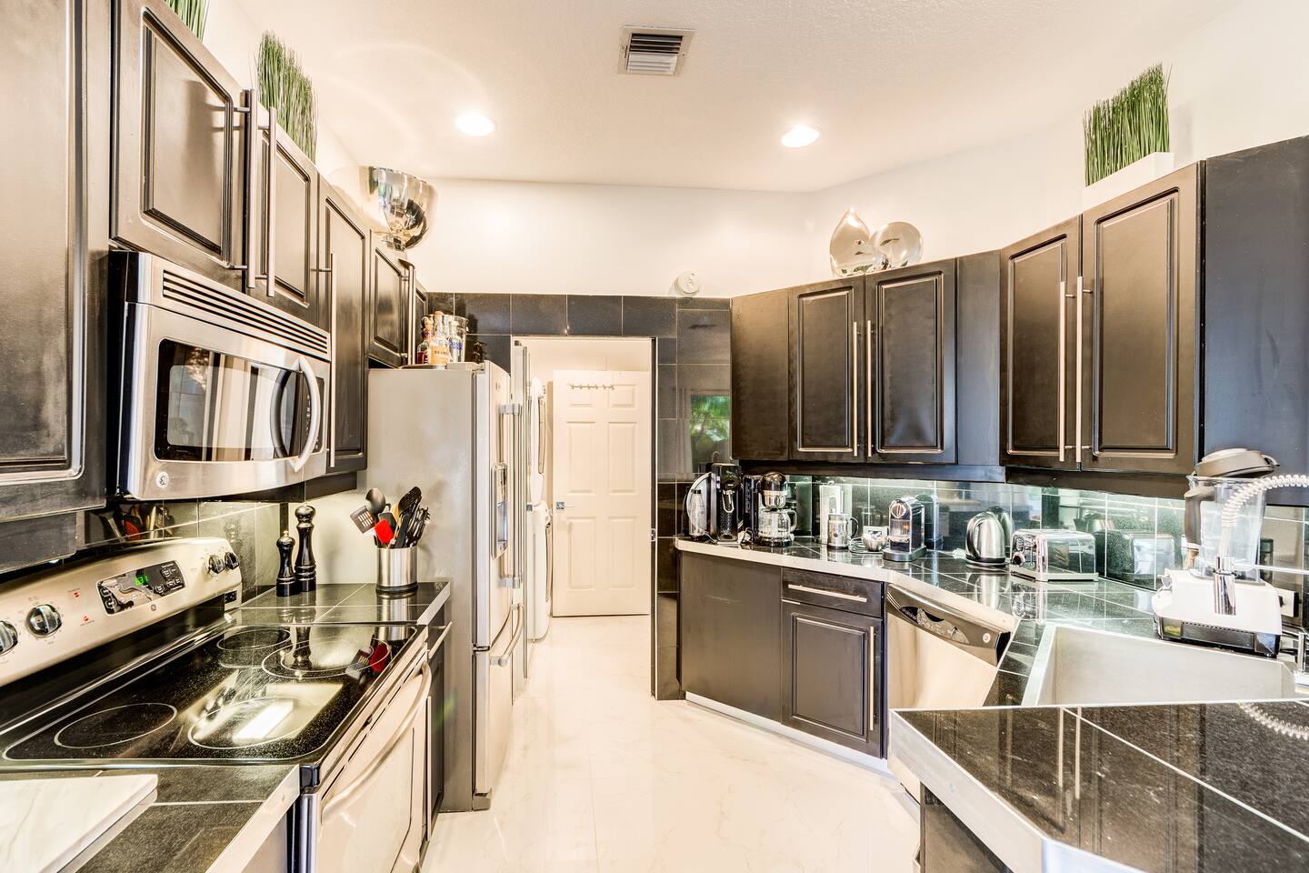 Welcome to your dream vacation destination! Experience luxury and comfort in this elegantly furnished and spacious retreat, spanning approximately 2300 square feet. Perfect for a family or group of up to 8 people, this stunning property boasts 4 bedrooms, ensuring everyone has their own space to unwind. Step into the inviting living room, where relaxation takes center stage. Sink into plush sofas and enjoy quality time with your loved ones as you watch your favorite shows on a large-screen TV. The serene ambiance will sweep you off your feet, making you feel right at home. The heart of this vacation paradise lies in its fully equipped kitchen with a stylish bar, offering a seamless blend of functionality and sophistication. Unleash your inner chef using top-of-the-line appliances, including a stove and oven for all your cooking needs. Need something quick? Our over-the-counter convectional microwave oven will have you enjoying delicious meals in no time. For your convenience, we provide a complete set of pots and pans, as well as cooking and eating utensils, making every meal preparation a seamless experience. Whip up gourmet meals using top-of-the-line appliances and share delightful moments around the dining table, comfortably seating 10 guests. From family feasts to intimate gatherings, this space caters to every occasion. Get your caffeine fix with both a coffeemaker and a Nespresso Cappuccino and Latte Maker, offering an array of delightful coffee experiences. Whether it's a quick pick-me-up or a leisurely latte, we have you covered. Indulge in the luxury of having 3 beautifully appointed bathrooms at your disposal. Each exudes a spa-like atmosphere, providing the perfect setting to pamper yourself. Step outside to your private back patio, an oasis of tranquility where you can bask in the sun or host a delightful BBQ gathering. Sizzle up your favorite grilled delicacies as you relish the beauty of your lush surroundings. It's the ideal spot to create cherished memories with family and friends. Imagine stepping onto the back patio and being greeted by your very own private Hot Tub Pool and a serene SPA seating area, all reserved just for you. This secluded haven is marked as a private pool in the amenities, ensuring complete privacy and tranquility throughout your stay. Unwind in the soothing waters of the Hot Tub, where worries melt away, and stress becomes a distant memory. The SPA seating area is the perfect spot to pamper yourself with a rejuvenating escape, leaving you feeling refreshed and renewed. But that's not all! As a cherished guest of our villa, you'll also have access to a lavish private pool, shared exclusively with other residents of the resort community, including those staying in our villa. This luxurious pool is only a pitch shot away, making it easily accessible whenever you desire a leisurely swim or simply wish to bask in the sun. Located in a prime area, this vacation haven is just moments away from local attractions and activities. Whether you seek thrilling adventures or serene relaxation, this destination has it all. Don't miss the chance to experience pure bliss in this upscale vacation rental. Book your stay now and embark on a journey of unforgettable moments in this enchanting retreat. Your dream vacation awaits! INQUIRE with US: Look/Search for "Contact Host" on bottom of this page Ask us for possible Lower Price or Larger Home Options Available. Let us know your Dates, Nr People, BUDGET, Nr of BEDROOMS needed.
