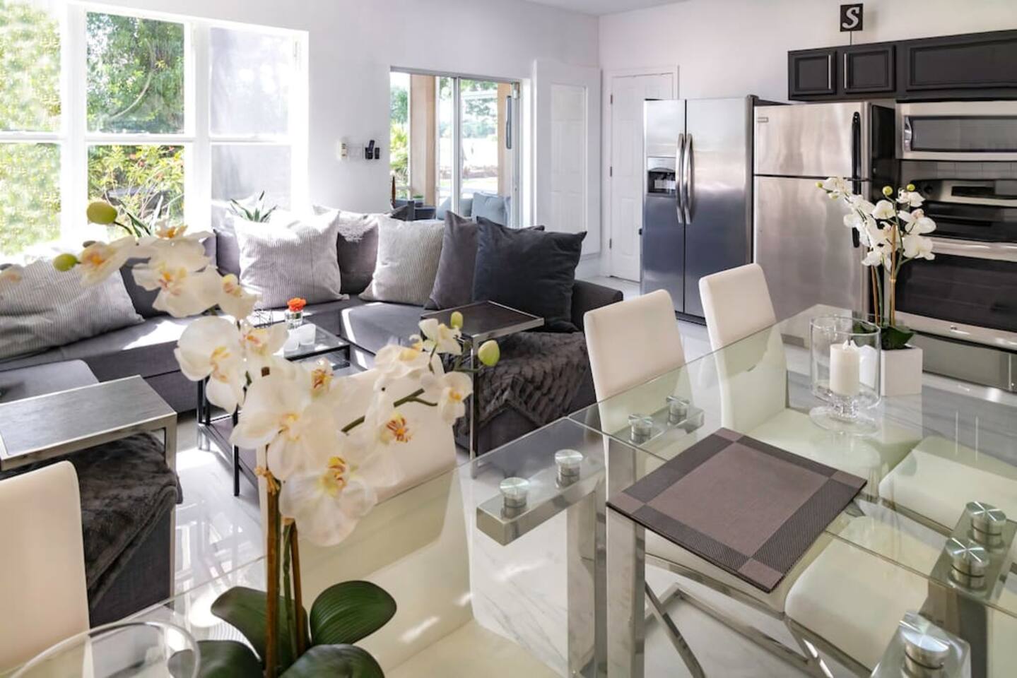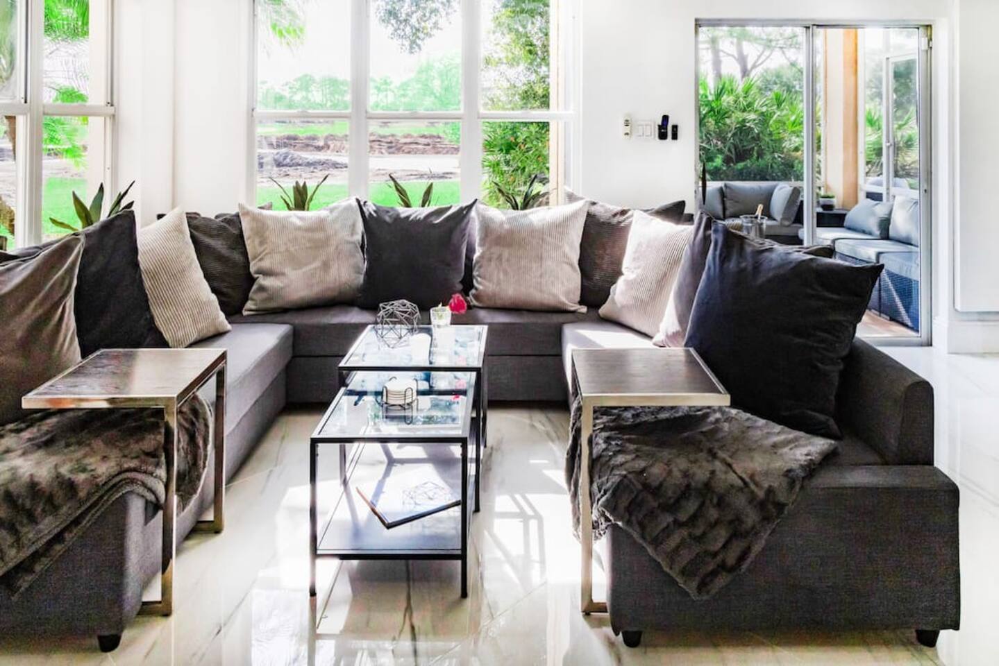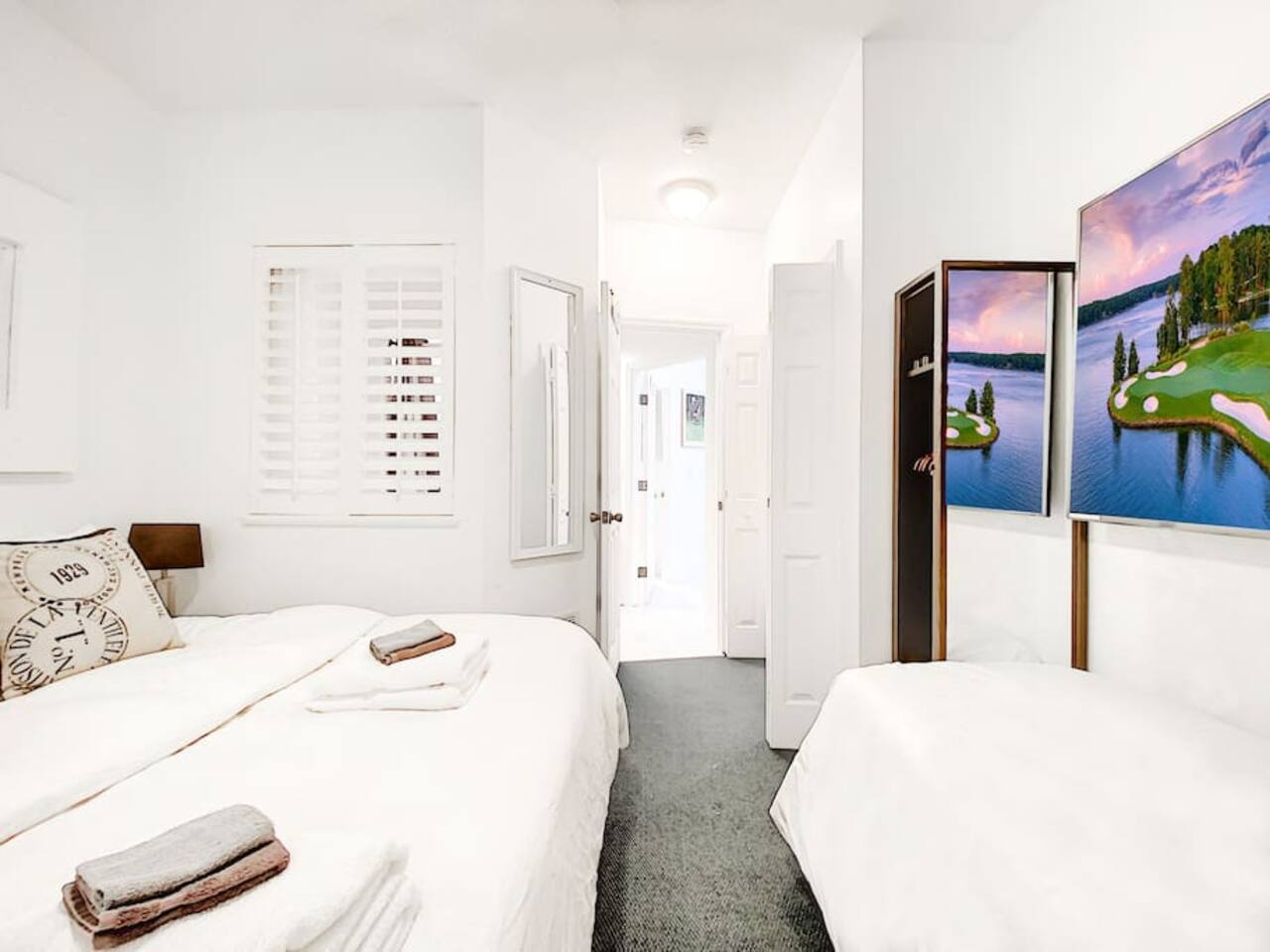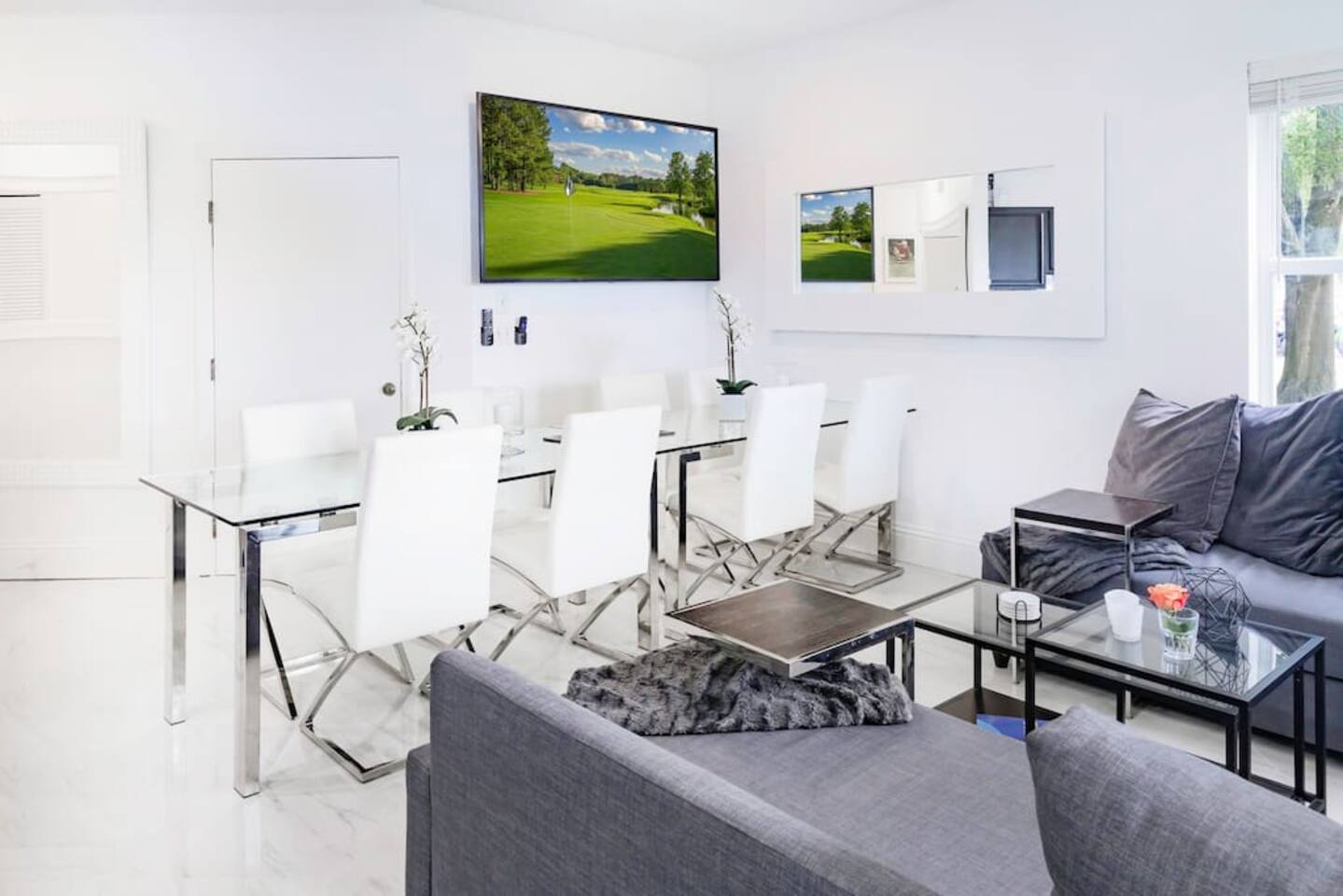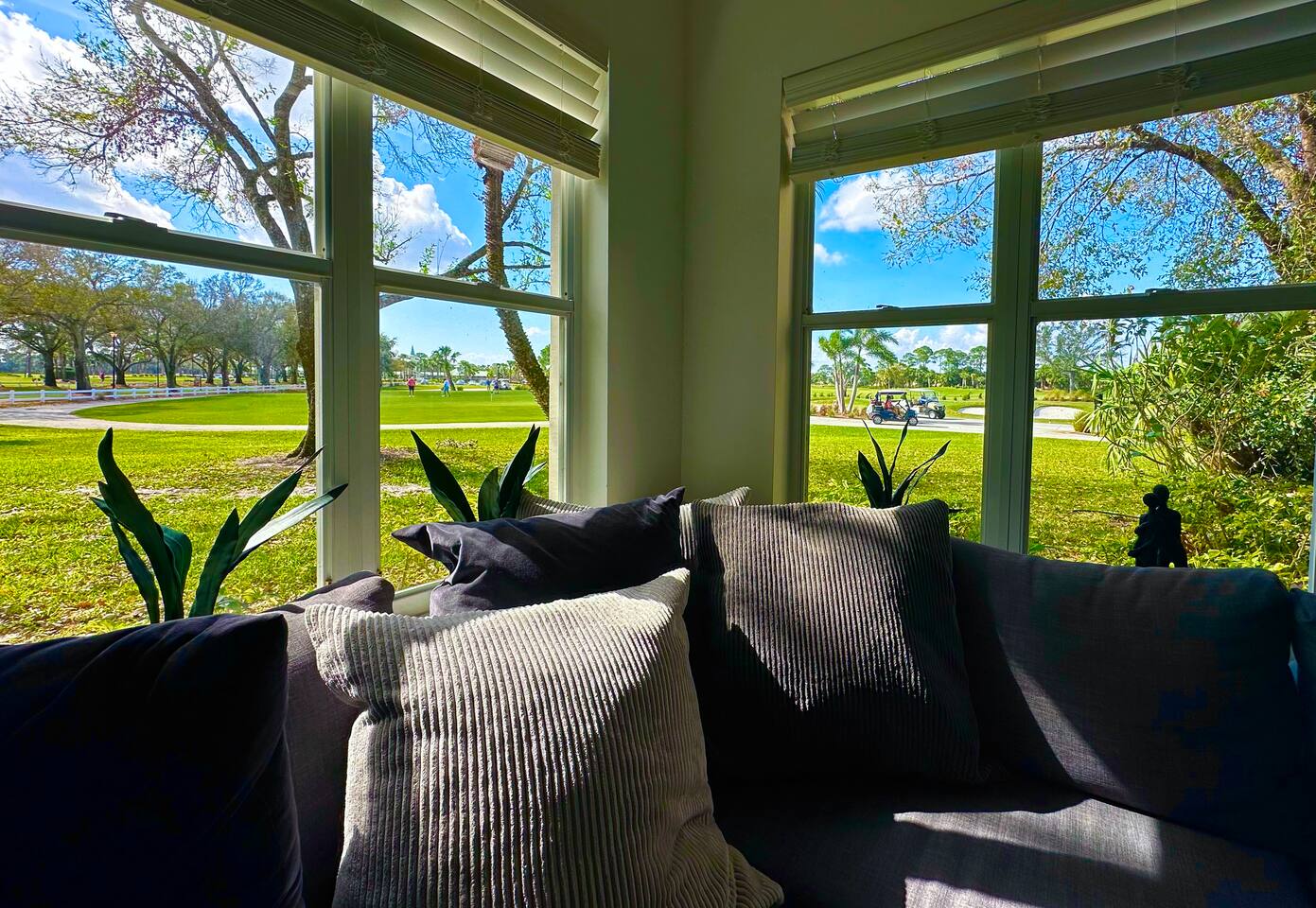 Welcome to your dream vacation paradise inside PGA Village Resort only 250 yards from the Golf Club House and close to shopping and restaurants. Largest GOLF VILLA in the PGA Village clubhouse area approximately 1800sf sleeping up to 10 persons (8 adults 2 kids) with 4 Bedrooms, 1 Sleeping Den with 1 Twin bed, Living Room, 3 Bathrooms, Fully Equipped Kitchen, and 2 Entertaining Patios. Also, enjoy TVs in all rooms and a large 75-inch Living room Smart TV with Netflix for your favorite show. Largest GOLF VILLA in the PGA Village clubhouse area approximately 1800sf sleeping up to 10 persons (8 adults and 2 kids) with 4 Bedrooms, 1 Sleeping Den with 1 Twin bed, Living Room, 3 Bathrooms, Fully Equipped Kitchen, and 2 Entertaining Patios. Also, enjoy TVs in all rooms and a large 75-inch Living room Smart TV with Netflix for your favorite shows. The fully equipped kitchen comes with a stove, oven, over-the-counter convectional microwave oven, fridge-freezer, dishwasher, coffeemaker, toaster, blender, pots & pans, cooking/eating utensils, iron, ironing board, ice-bucket, wine glasses, and an extra kitchenette bar with 2 chairs. Large-size dining table seating with 8 dining chairs. You'll have everything you need to cook up a storm and entertain guests. The living room has beautiful views over the golf Pitch and Putt area and is great for relaxing. Comes with a large sofa group, a table, and a large 75-inch Smart TV with Netflix, perfect for catching up on your favorite shows after a long day on the golf course or exploring the local area. All Bedrooms come with Down Comforters, Memory Foam, Duvet Sheet Covers, and High Thread Count Bed Linen. Whether you prefer large-size beds or individual beds, we've got you covered. Our bedrooms are fully customizable to suit your needs and preferences. You'll love waking up in the morning feeling refreshed and rejuvenated after a restful night's sleep. Bedroom Nr 1: 1 King or 2 Single Size Beds, 1 extra Single Bed, 60 Inch Plasma Smart TV with Cable TV, Closet, High Tread Count Bed- & Bath Linen. Bedroom Nr 2: 1 King or 2 Single Size Beds, 26 Inch Plasma Smart TV with Cable TV, Closet, High Tread Count Bed- & Bath Linen. Bedroom Nr 3: 1 King or 2 Single Size Beds, 26 Inch Plasma Smart TV with Cable TV, Closet, High Tread Count Bed- & Bath Linen. Bedroom Nr 4: 2 Single Size Beds, 26 Inch Plasma Smart TV with Cable TV, Closet, High Tread Count Bed- & Bath Linen. Sleeping Den: 1 Single Bed with closet, 26 Inch Plasma Smart TV with Cable TV, Closet, High Tread Count Bed- & Bath Linen. And let's not forget about the bathrooms! They come complete with high thread count bath linen, ensuring that you'll feel pampered and indulged every time you step out of the shower or bath. Bathroom Nr 1: Jacuzzi Hot Tub & Shower combo Bathroom Nr 2: Standing shower Bathroom Nr 3: Shower and Bathtub Combo You'll love spending time on the 2 entertaining patios, one overlooking the golf course and the other with morning sun, plenty of seating for up to 10 people. And if you need to get some work done, the lobby room has a computer workstation and high-speed wifi internet access. Whether you're traveling with family or friends, this villa is the perfect choice for your next vacation. We would love to host you and make your stay with us unforgettable :-)