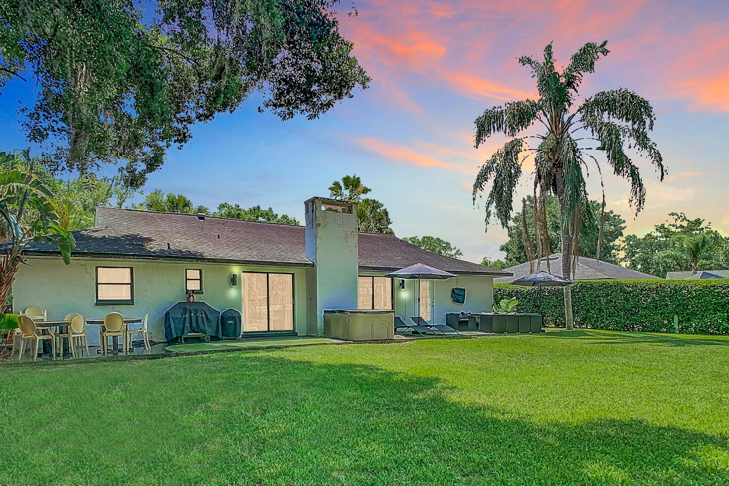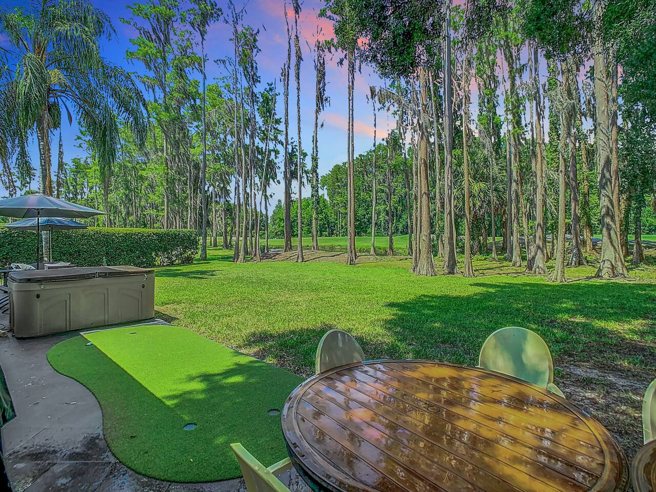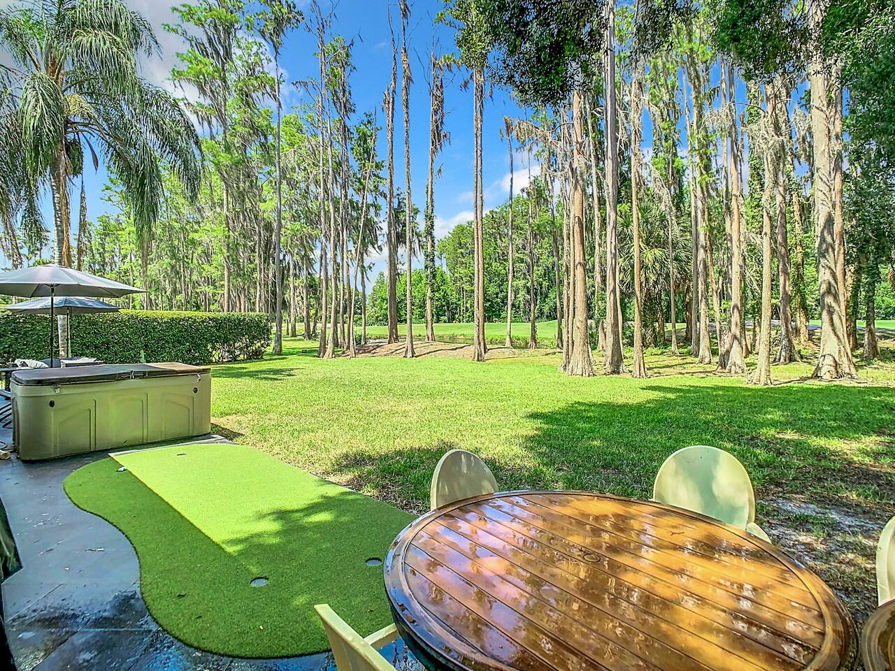 Our entertaining villa is the perfect place to relax and unwind with your family and friends. With 6 bedrooms and 4 bathrooms, this 2000sf villa can comfortably sleep up to 12 people. The fully equipped kitchen comes with Stove, Oven, Over-the-counter Convectional Microwave Oven, Fridge and Freezer, Coffeemaker, Nespresso Cappuccino and Latte Maker, Toaster, Blender, Pots & Pans, Cooking/eating utensils, Iron, Ironing-board, Ice-Bucket and Wine Glasses. Kitchen overlooks the spacious dining area and the built-in lodge-type fireplace and is perfect for preparing delicious meals. The kitchen bar with seating for 4 people is the perfect spot for a quick snack or morning coffee. The dining table can seat up to 12 people, making it the perfect place for a family dinner or a fun game night. The living room features an oversized sofa group and a 75 inch plasma smart TV, perfect for movie nights or catching up on your favorite shows The villa has 4 bathrooms, ensuring that everyone has plenty of space and privacy. Step outside onto the patio and take in the breathtaking views of the golf course. The BBQ grill with seating for up to 12 people is perfect for hosting a summer cookout, while the designer lounge sunbeds on the back patio are the perfect spot to soak up the sun. And if you're looking for the ultimate relaxation experience, look no further than the private Hot Tub Spa. Soak your cares away and enjoy the peace and tranquility of this cozy villa. The backyard is what sets this home apart from others! You must see it to appreciate it! The secluded lot includes mature landscaping such as gorgeous tall trees, bamboo, and different types of Florida cypress trees, adding to the serene feel of the home. Nestled behind beautiful greenery this home is situated on one of the most picturesque golf course lots in the renowned Saddlebrook Golf & Tennis Resort! Saddlebrook Tennis & Golf Resort community is a gated residential community and resort, has 24-hour gate security and boasts two of Florida's most impressive 18-hole golf courses designed by Arnold Palmer, 45 tennis courts, and even a grass court where many pros have played. A true "golf cart community". Saddlebrook Preparatory Academy for junior athletes is also located in the neighborhood! The community is located only minutes from I-75, as well as the beloved Wesley Chapel area with all the shopping, dining, and entertainment locations it has to offer. Villa offers parking space for three cars. LG High Efficiency Washer and Dryer. All Bedrooms come with Down Comforters, Memory Foam, Duvet Sheet Covers, and High Thread Count Bed Linen. Whether you prefer large-size beds or individual beds, we've got you covered. Our bedrooms are fully customizable to suit your needs and preferences. You'll love waking up in the morning feeling refreshed and rejuvenated after a restful night's sleep. BR #1: 1 King Size Bed or 2 Twin Size Beds and 1 Twin Bed, 26 Inch Smart TV and Closet BR #2: 1 King Size Bed or 2 Twin Size Beds and 1 Twin Bed, 26 Inch Smart TV and Closet BR #3: 1 King Size Bed or 2 Twin Size Beds, 50 Inch Smart TV and Closet BR #4: 1 Queen Size Bed, 26 Inch Smart TV and Closet BR #5: 1 King Size Bed or 2 Twin Size Beds, 26 Inch Smart TV and Closet BR #6: 1 King Size Bed or 2 Twin Size Beds, 26 Inch Smart TV and Closet Den #1: 1 Twin Bed, 26 Inch Smart TV and Closet Den #2: 1 Twin Bed, 26 Inch Smart TV and Closet And let's not forget about the bathrooms! They come complete with high thread count bath linen, ensuring that you'll feel pampered and indulged every time you step out of the shower or bath. * BA # 1: Bathroom with Standing Shower and Dual Sinks * BA # 2: Bathroom with Bathtub and Shower combination and Dual Sinks * BA # 3: Bathroom with Standing Shower * BA # 4: Bathroom with Standing Shower We also offer a complimentary BBQ grill, perfect for those beautiful evenings with family and friends. Our Netflix and Amazon accounts are at your disposal, providing you with 24/7 free movies. We have a wide range of family games, including Scrabble, Jenga, Kids against Maturity, Hygge games, and Blackjack, all available for your entertainment. Don't hesitate to make your reservation with us today or inquire for more information. We would love to host you and make your stay with us unforgettable. :-) INQUIRE with US: Look/Search for "Contact Host" on bottom of this page Ask us for possible Lower Price or Larger Home Options Available. Let us know your Dates, Nr People, BUDGET, Nr of BEDROOMS needed