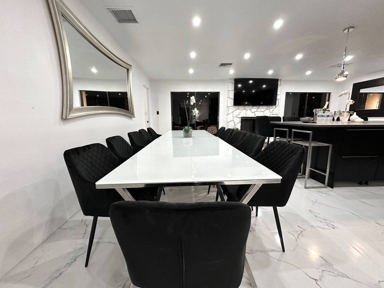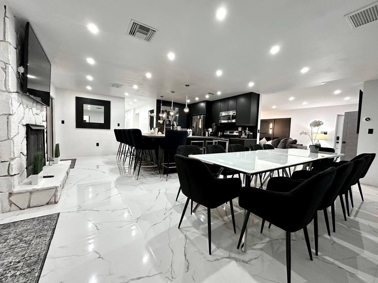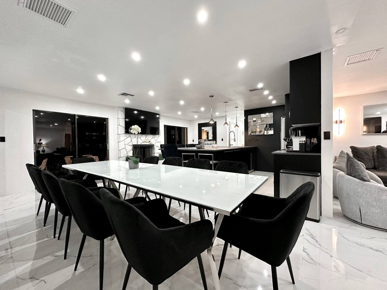 Our entertaining villa is the perfect place to relax and unwind with your family and friends. With 6 bedrooms and 4 bathrooms, this 2000sf villa can comfortably sleep up to 12 people. The fully equipped kitchen comes with Stove, Oven, Over-the-counter Convectional Microwave Oven, Fridge and Freezer, Coffeemaker, Nespresso Cappuccino and Latte Maker, Toaster, Blender, Pots & Pans, Cooking/eating utensils, Iron, Ironing-board, Ice-Bucket and Wine Glasses. Kitchen overlooks the spacious dining area and the built-in lodge-type fireplace and is perfect for preparing delicious meals. The kitchen bar with seating for 4 people is the perfect spot for a quick snack or morning coffee. The dining table can seat up to 12 people, making it the perfect place for a family dinner or a fun game night. The living room features an oversized sofa group and a 75 inch plasma smart TV, perfect for movie nights or catching up on your favorite shows The villa has 4 bathrooms, ensuring that everyone has plenty of space and privacy. Step outside onto the patio and take in the breathtaking views of the golf course. The BBQ grill with seating for up to 12 people is perfect for hosting a summer cookout, while the designer lounge sunbeds on the back patio are the perfect spot to soak up the sun. And if you're looking for the ultimate relaxation experience, look no further than the private Hot Tub Spa. Soak your cares away and enjoy the peace and tranquility of this cozy villa. The backyard is what sets this home apart from others! You must see it to appreciate it! The secluded lot includes mature landscaping such as gorgeous tall trees, bamboo, and different types of Florida cypress trees, adding to the serene feel of the home. Nestled behind beautiful greenery this home is situated on one of the most picturesque golf course lots in the renowned Saddlebrook Golf & Tennis Resort! Saddlebrook Tennis & Golf Resort community is a gated residential community and resort, has 24-hour gate security and boasts two of Florida's most impressive 18-hole golf courses designed by Arnold Palmer, 45 tennis courts, and even a grass court where many pros have played. A true "golf cart community". Saddlebrook Preparatory Academy for junior athletes is also located in the neighborhood! The community is located only minutes from I-75, as well as the beloved Wesley Chapel area with all the shopping, dining, and entertainment locations it has to offer. Villa offers parking space for three cars. LG High Efficiency Washer and Dryer. All Bedrooms come with Down Comforters, Memory Foam, Duvet Sheet Covers, and High Thread Count Bed Linen. Whether you prefer large-size beds or individual beds, we've got you covered. Our bedrooms are fully customizable to suit your needs and preferences. You'll love waking up in the morning feeling refreshed and rejuvenated after a restful night's sleep. BR #1: 1 King Size Bed or 2 Twin Size Beds and 1 Twin Bed, 26 Inch Smart TV and Closet BR #2: 1 King Size Bed or 2 Twin Size Beds and 1 Twin Bed, 26 Inch Smart TV and Closet BR #3: 1 King Size Bed or 2 Twin Size Beds, 50 Inch Smart TV and Closet BR #4: 1 Queen Size Bed, 26 Inch Smart TV and Closet BR #5: 1 King Size Bed or 2 Twin Size Beds, 26 Inch Smart TV and Closet BR #6: 1 King Size Bed or 2 Twin Size Beds, 26 Inch Smart TV and Closet Den #1: 1 Twin Bed, 26 Inch Smart TV and Closet Den #2: 1 Twin Bed, 26 Inch Smart TV and Closet And let's not forget about the bathrooms! They come complete with high thread count bath linen, ensuring that you'll feel pampered and indulged every time you step out of the shower or bath. * BA # 1: Bathroom with Standing Shower and Dual Sinks * BA # 2: Bathroom with Bathtub and Shower combination and Dual Sinks * BA # 3: Bathroom with Standing Shower * BA # 4: Bathroom with Standing Shower We also offer a complimentary BBQ grill, perfect for those beautiful evenings with family and friends. Our Netflix and Amazon accounts are at your disposal, providing you with 24/7 free movies. We have a wide range of family games, including Scrabble, Jenga, Kids against Maturity, Hygge games, and Blackjack, all available for your entertainment. Don't hesitate to make your reservation with us today or inquire for more information. We would love to host you and make your stay with us unforgettable. :-) INQUIRE with US: Look/Search for "Contact Host" on bottom of this page Ask us for possible Lower Price or Larger Home Options Available. Let us know your Dates, Nr People, BUDGET, Nr of BEDROOMS needed