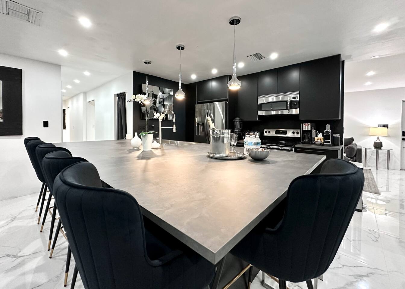 If you require additional housekeeping during your stay, we can arrange it for you at nominal charges. We provide a BBQ grill and a fire pit for your use, both of which run on gas. Please note that you are responsible for providing the gas. Once the tanks run empty, you can easily get them refilled at nearby Gas stations, CVS, Walgreens, Walmart, Lowes, and other convenient locations. All restaurants, SPA, and Golf courses are open to the public at general public rates. Tennis courts are private and tennis can only be played in pre-booked & pre-paid group tennis clinics at the tennis academy. SHEETS, DUVET & BEDDING - We provide 2 Twin size down comforters for a King size bed set up or 1 Twin down comforter for each Twin size bed set up. (1 per person) - We provide 4 pillows for a King size bed set up and 2 pillows for each Twin size bed set up (that is 2 per person) - When a King size bed set up is requested, it consists of 2 Twin bed frames being placed together covered with memory foam and a King size mattress cover. (So, you get the comfortable King size bed experience). - We use duvet sheets that go around each down comforter, which are common in Europe and at most modern hotels. The duvet sheet cover sheets get washed before each guest's arrival. Therefore, we do not use any additional top sheets as the duvet sheet that covers the comforter is the fitted top sheet. INQUIRE with US: Look/Search for "Contact Host" on bottom of this page Ask us for possible Lower Price or Larger Home Options Available. Let us know your Dates, Nr People, BUDGET, Nr of BEDROOMS needed