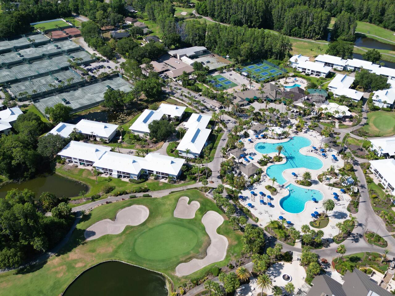 Located in Saddlebrook Golf & Tennis Resort with a majestic view of the golf course, just steps away from the clubhouse and restaurants, this villa is the perfect location for all your golf and tennis adventures with easy access to some of Tampa’s famed tourist attractions. In the resort community, there are restaurants, bars, and a casual resort cafe. Very close to shopping malls. A few miles from Interstate 75, the major North-South artery of Florida, 10 minutes from Adventure Island, 20 minutes to Florida Aquarium, and barely 60 min to Disney World. The North New Tampa is ranked # 1 in Florida as the most popular Golf & SPA Destination and # 2 in the entire USA. For those who love to shop, the Downtown Shoppes at Wiregrass are just a short 10-minute drive away, while adventure seekers will love the proximity to Adventure Island. And for those who want to explore the best of Tampa, the Florida Aquarium and Busch Gardens are just a 20-minute drive away. Just one mile from I75, you'll have easy access to all the amenities you need, including the Tampa Premium Outlets, The Grove Mall, Advent Hospital, Center Ice Rink, Wesley Chapel's movie theaters, and restaurants. And if you're looking for some more family fun, Sea World, Disney World, Epcot, and Volcano Bay are all very popular day excursions. But that's not all - just five miles away, you'll find the stunning Epperson Lagoon, a true oasis for relaxation and recreation. Take a dip in the crystal-clear waters, soak up the sun on the sandy beach, or enjoy a variety of water sports and activities. SADDLEBROOK RESORT All restaurants and both 2 Arnold Palmer Golf Courses at Saddlebrook are open to the public at general public rates and information below is from Saddlebrook Hotel. Saddlebrook is home to two of Florida's most picturesque and playable golf courses (discounted green fees often available), as well as the renowned Saddlebrook Golf Academy and the Saddlebrook Preparatory School for junior athletes. Designed by golf legend Arnold Palmer, both Tampa golf courses incorporate rolling fairways and well-maintained greens along with wilderness areas full of cypress, pine, and palm trees. Add in our state-of-the-art training facility, Pro Shop, and professional instruction, and it’s easy to see why Saddlebrook is an unrivaled Florida golf resort. 18-Hole, Par 71, Palmer Course 18-Hole, Par 70, Saddlebrook Course 16-Acre Golf Training Center (with paid green fees) Saddlebrook Golf Academy Professional Golf Instruction Trackman, SamBalanceLab, and SamPuttLab Junior Golf Camps Saddlebrook Preparatory School for Junior Golfers Pro Shop offers sportswear and accessories Top-Of-The-Line Rental Equipment Entertainment at Saddlebrook When your meeting or golf game is over for the day, the fun is just beginning at Saddlebrook. Whether you want to catch the latest sports action on T.D.'s Sports Bar's eight flat-screen televisions and a DJ spins your favorite music at the bars. There's always something going on at Saddlebrook. Enjoy Prime Steaks & More at Saddlebrook's Restaurants The restaurants at Saddlebrook offer both fine and casual award-winning dining served by our signature hospitality. Whether you are enjoying a post-game lunch while overlooking the 18th green or enjoying a fresh breakfast with the family at Tropic's Restaurant, our options are sure to delight every palate. Relax at Saddlebrook's Casual Cafés and Lounges Looking for the perfect place to unwind after a day on the greens or in the boardroom? Saddlebrook's cafés and lounges are ready to welcome you in style. Enjoy light bites and tropical refreshments from the Café and the Bar. Sample a tempting variety of coffees, teas, and pastries at the Coffee Bar. T.D.'s Sports Bar Sports fans will find their home away from home in our friendly bar, where all-day satellite service beams events from all over the world on T.D.'s eight large-screen televisions. Catch the latest sporting action while you enjoy delicious breakfast, lunch, salads, burgers, and specialty sandwiches along with draft beers and a full cocktail menu. Café & Bar When you are in the mood for fresh, open-air dining. Saddlebrook's Café and Bar serve light bites and tropical delights all day long. Choose from a tempting menu of salads, wraps, sandwiches, and more. Enjoy standards like hamburgers and hotdogs, or try a unique selection like our Jamaican Chicken Club sandwich. You can also indulge in refreshing tropical rum drinks as you relax in the sun. (Access to Saddlebrook amenities is subject to change without notice as we are not affiliated with the hotel).